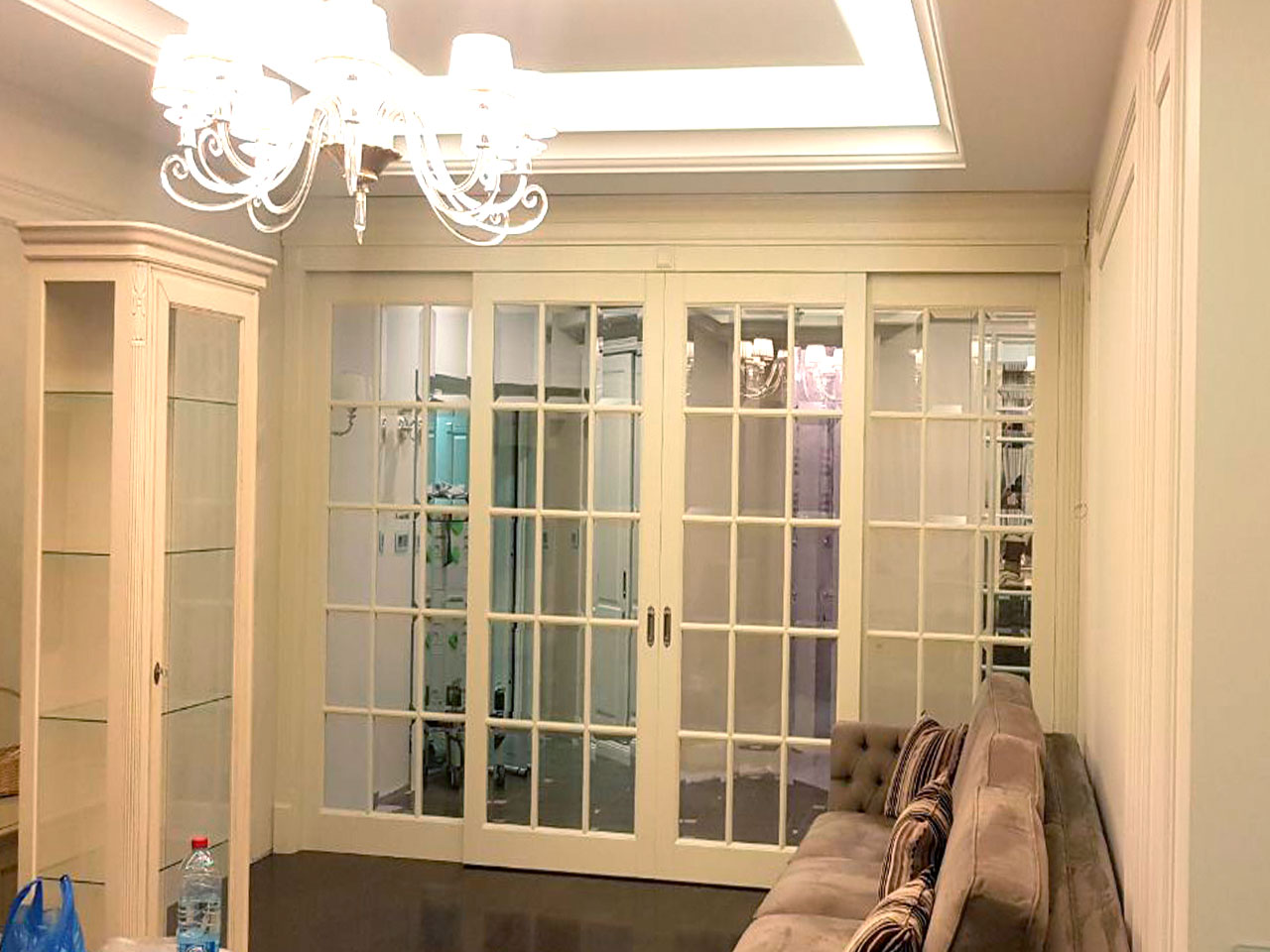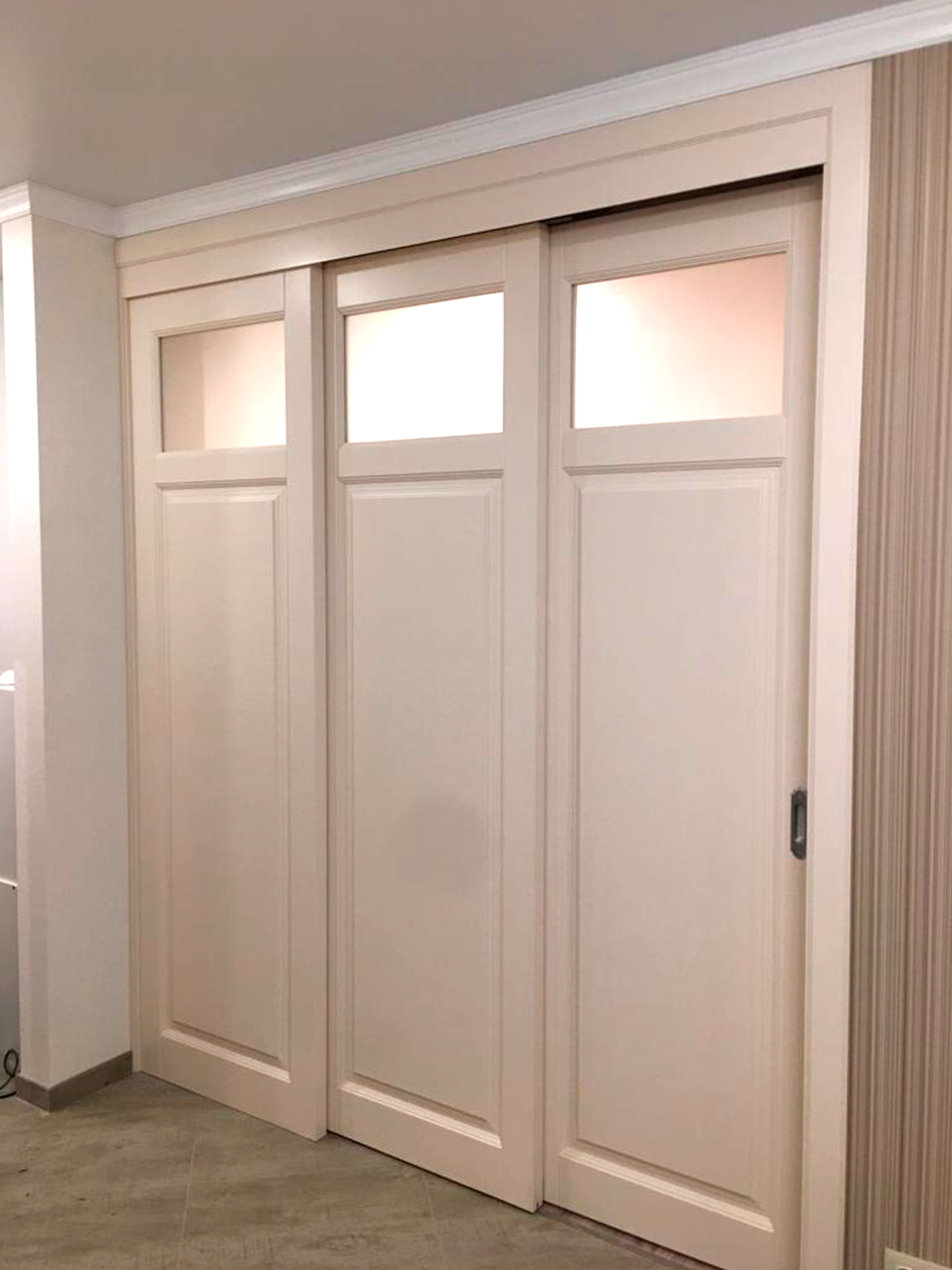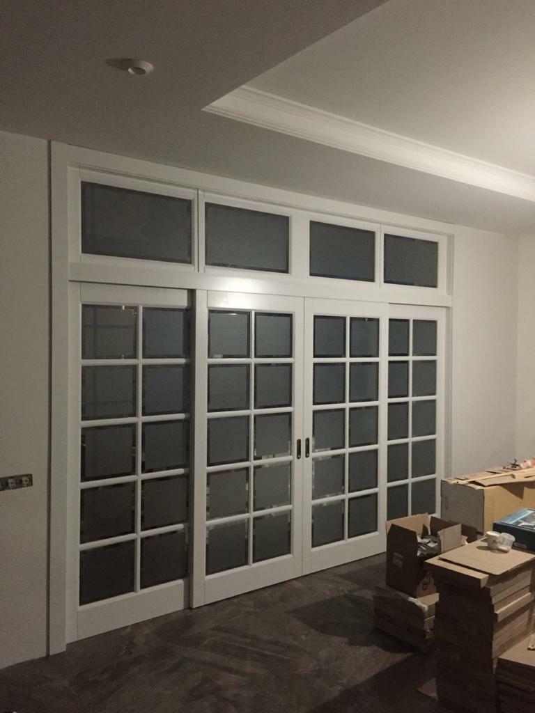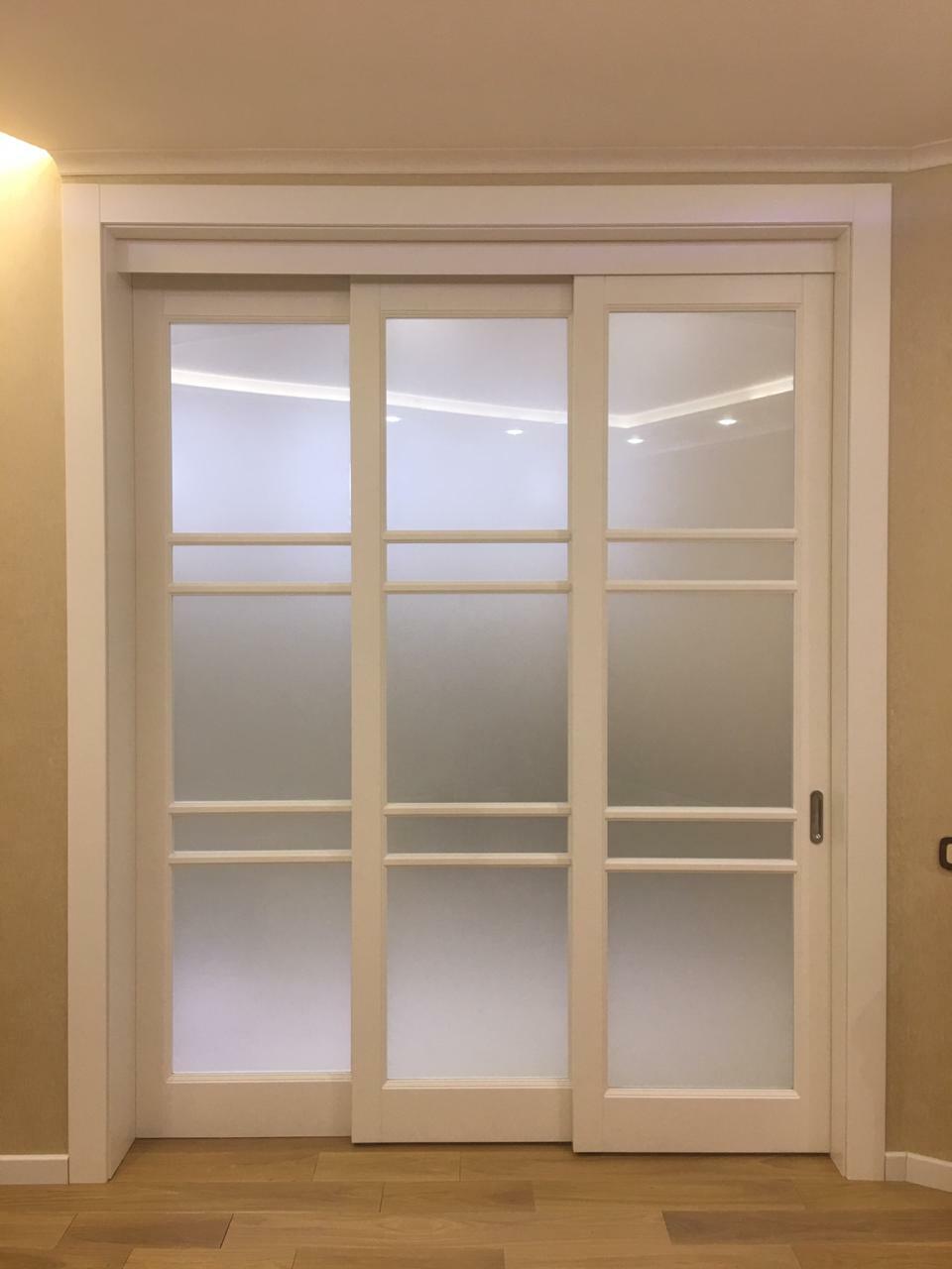 Стоимость раздвижных перегородок рассчитывается индивидуально в зависимости от размеров Вашего проема, моделей выбранных дверных полотен и наличников.