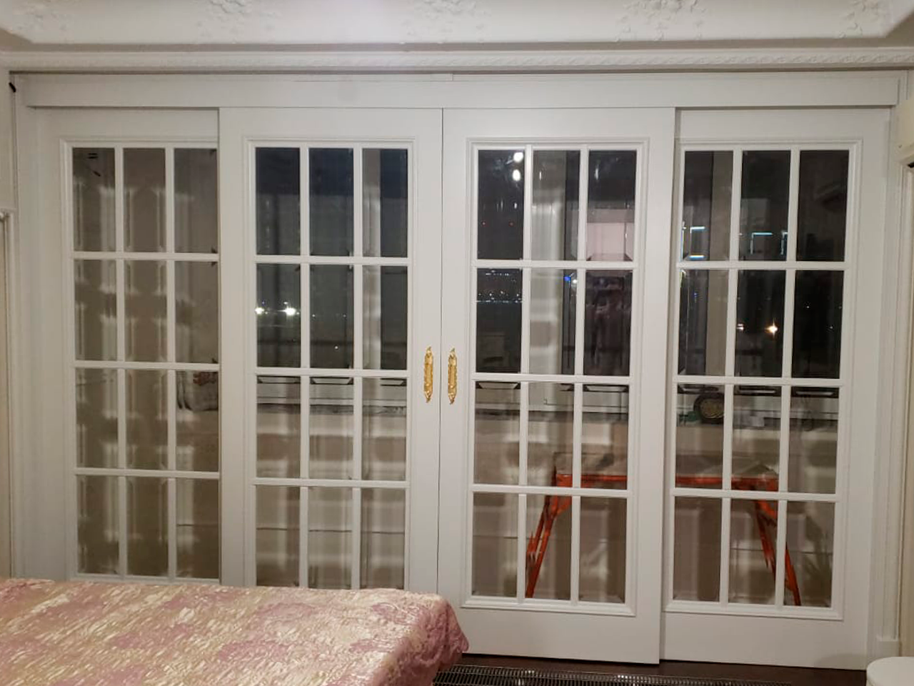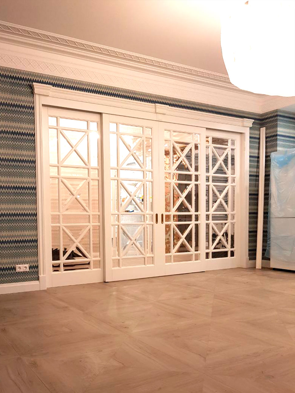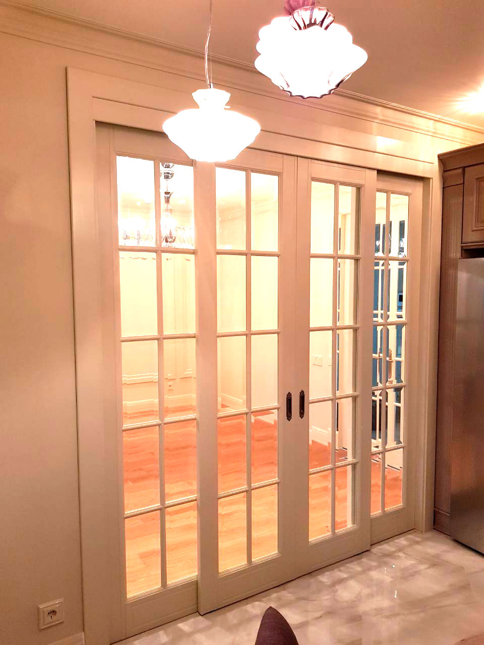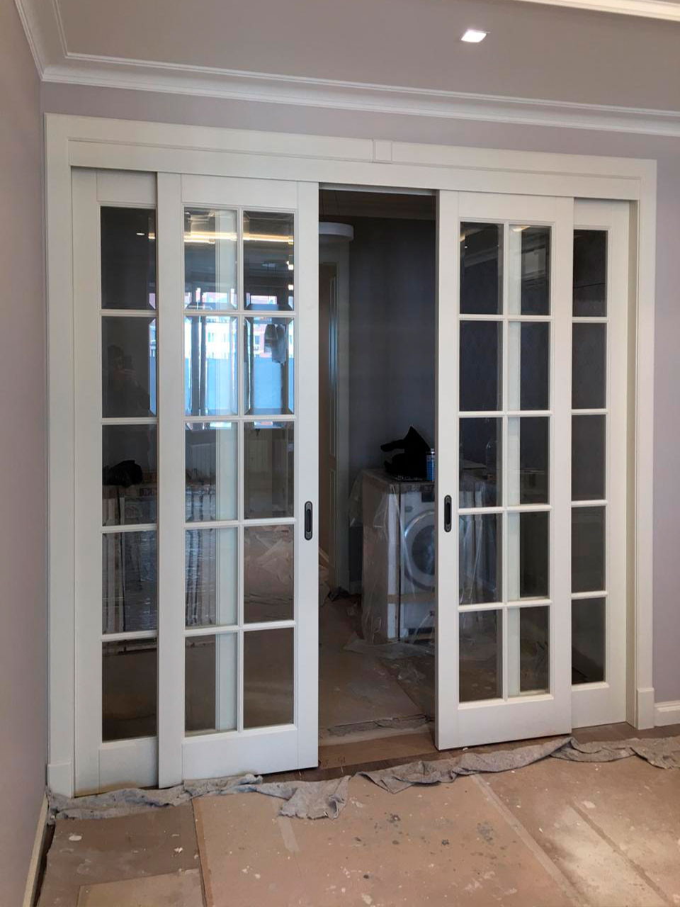 Стоимость раздвижных перегородок рассчитывается индивидуально в зависимости от размеров Вашего проема, моделей выбранных дверных полотен и наличников.