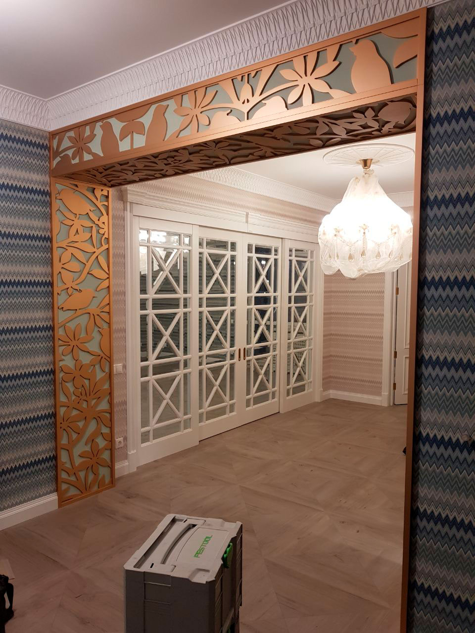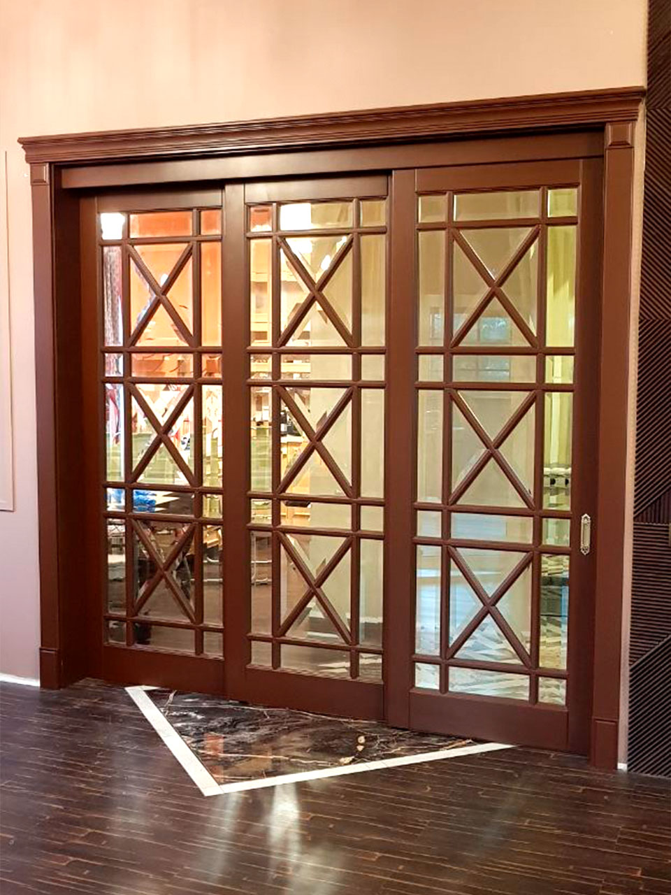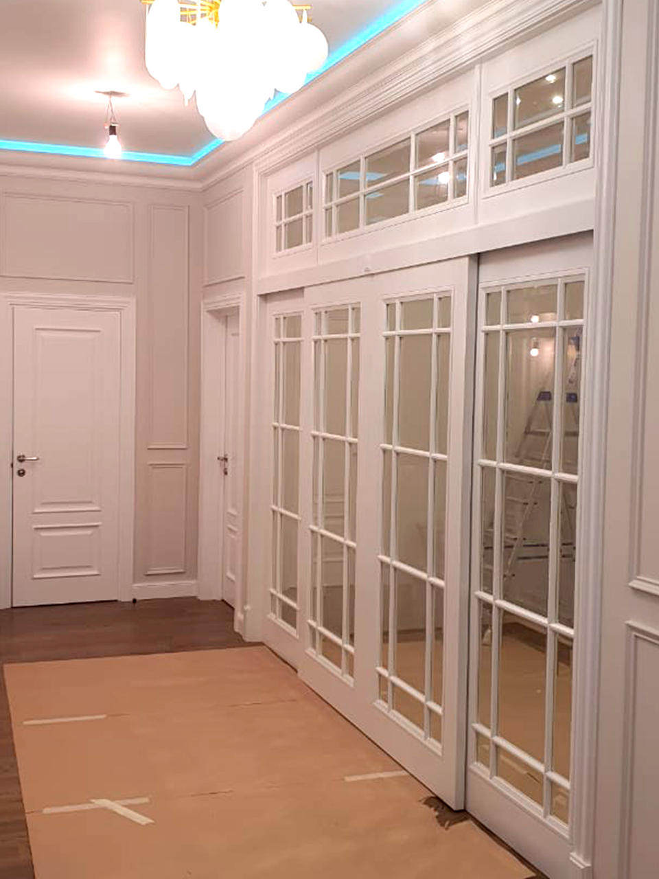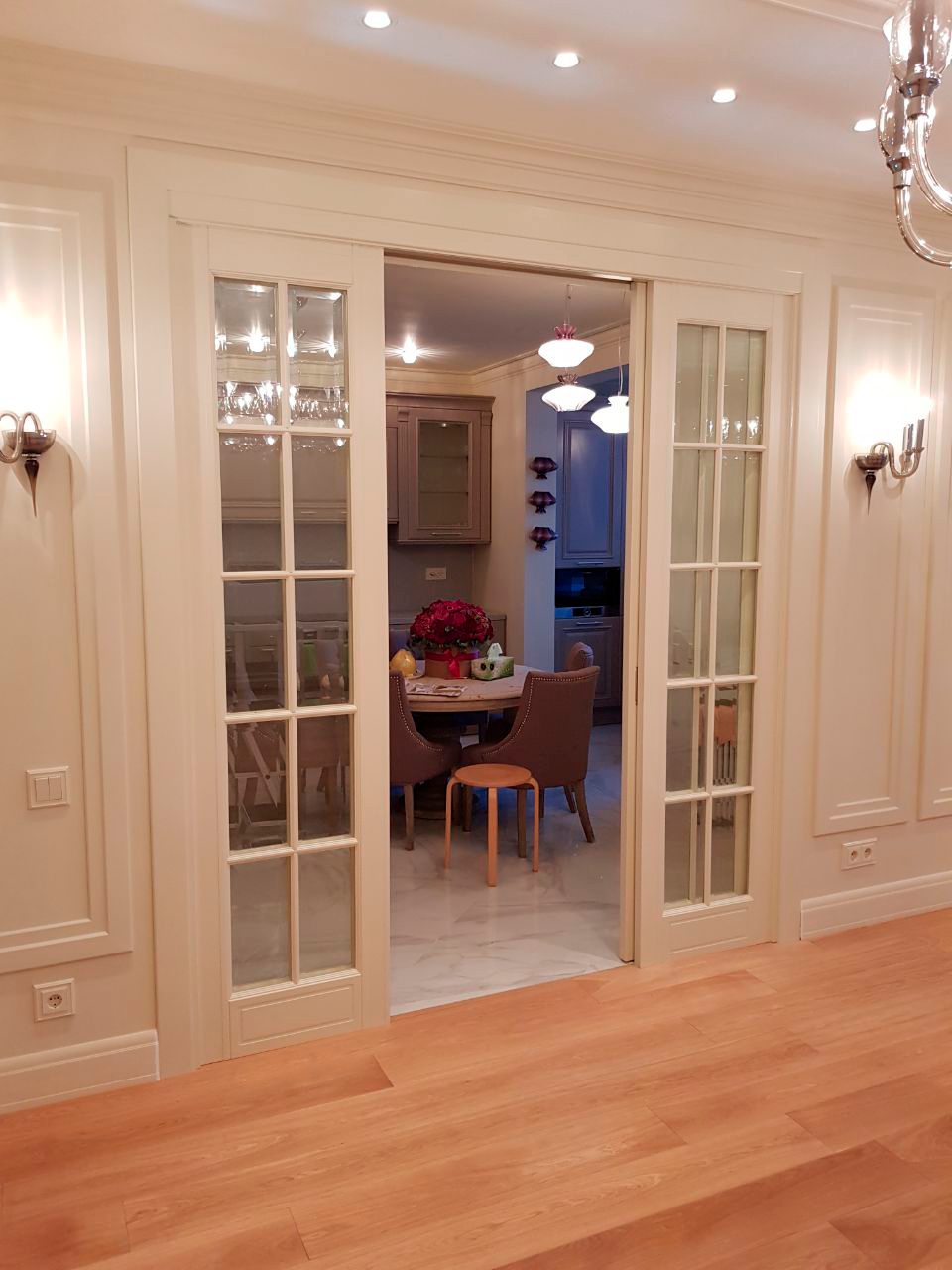 Стоимость раздвижных перегородок рассчитывается индивидуально в зависимости от размеров Вашего проема, моделей выбранных дверных полотен и наличников.