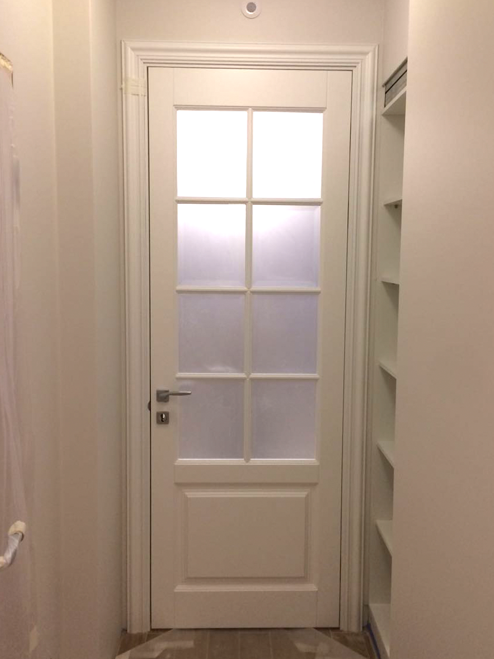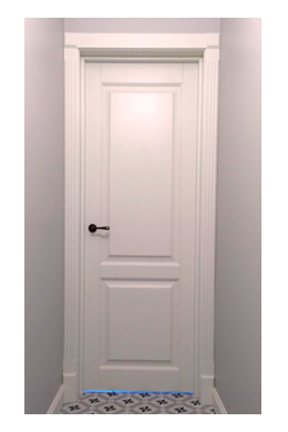 Цвет белый (по палитре RAL classic K7), высота полотна 2 метра. В комлект входят: полотно, короб, наличники с 2х сторон плоские шириной 80мм. Без фурнитуры.