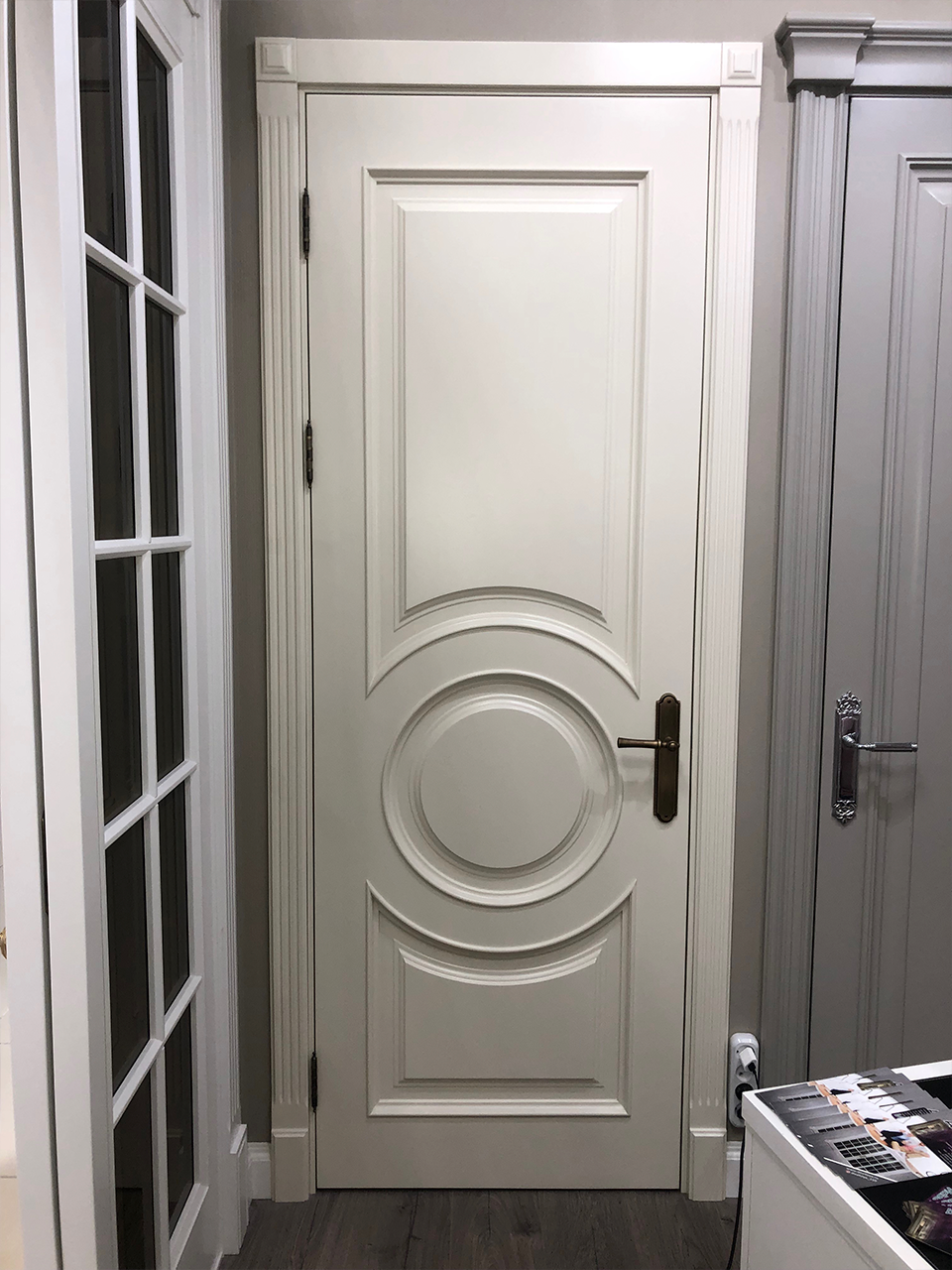 Цвет белый (по палитре RAL classic K7), высота полотна 2 метра. В комлект входят: полотно, короб, наличники с 2х сторон плоские шириной 80мм. Без фурнитуры.